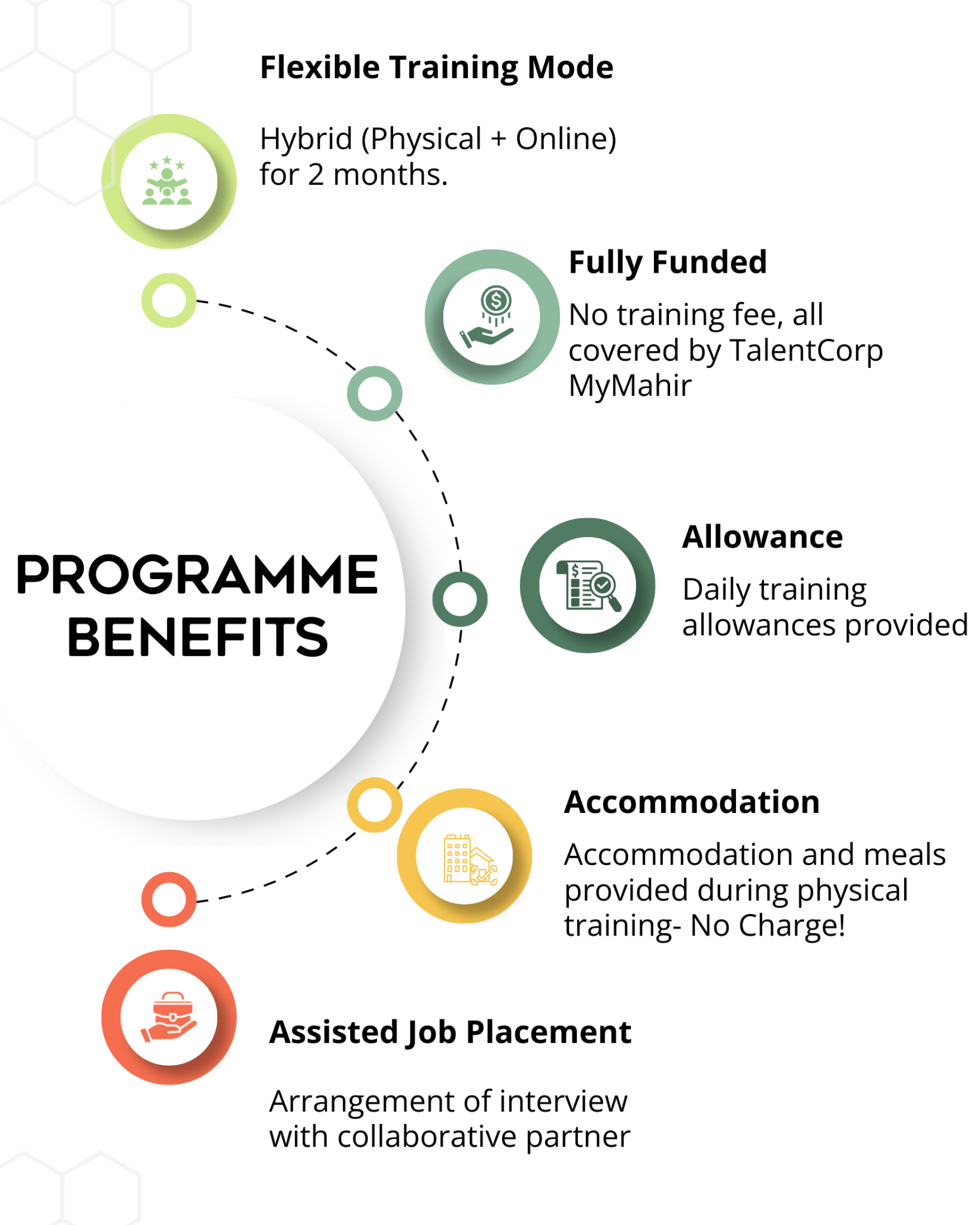 TalentCorp MyMAHIR programme is a 2-months structured training initiative designed to prepare unemployed individuals for customer-facing roles. Upon completion of the training, participants will be matched with potential employers to support their entry into the workforce. The programme is focused on uncovering potential rather than solely measuring current capability.